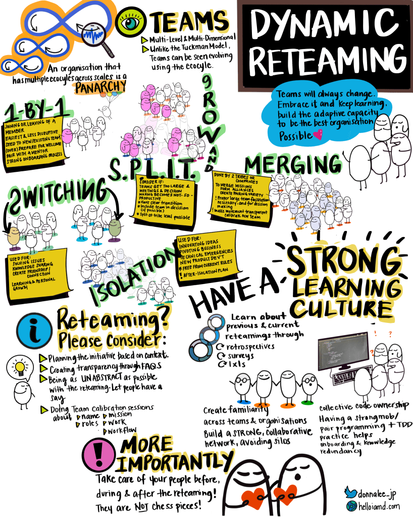 Did a sketchnote of the dynamic reteaming book. I want to thank Humu.com for inspiration of my potato-beings. Please let me know if I violated any copyright on them 😅